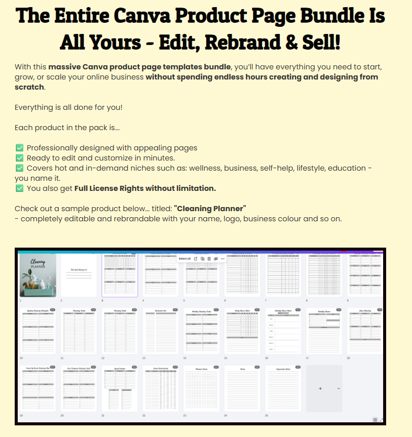 Every template is fully editable in Canva, a platform known for its ease of use, enabling even complete beginners to personalize products for resale. Additionally, the bundle comes with master resale rights, meaning you can sell these templates repeatedly and keep 100% profits.