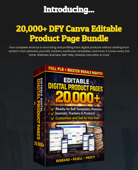 That’s where the 20,000+ Canva Bundle comes in. This massive library of ready-made, editable digital products puts the power back in your hands, allowing you to customize, rebrand, and sell instantly without any hassle or technical know-how. It’s the shortcut you need to build your digital store faster and with confidence.