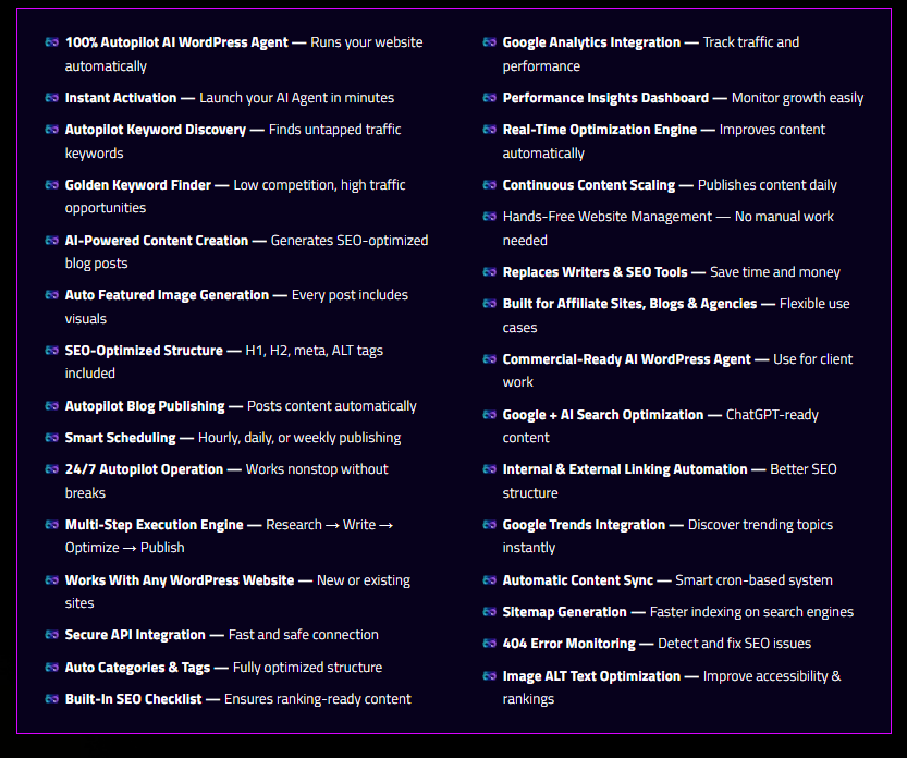 Instead of helping you manage your website, it claims to run your entire WordPress site on autopilot—finding keywords, creating content, publishing posts, and optimizing everything automatically.