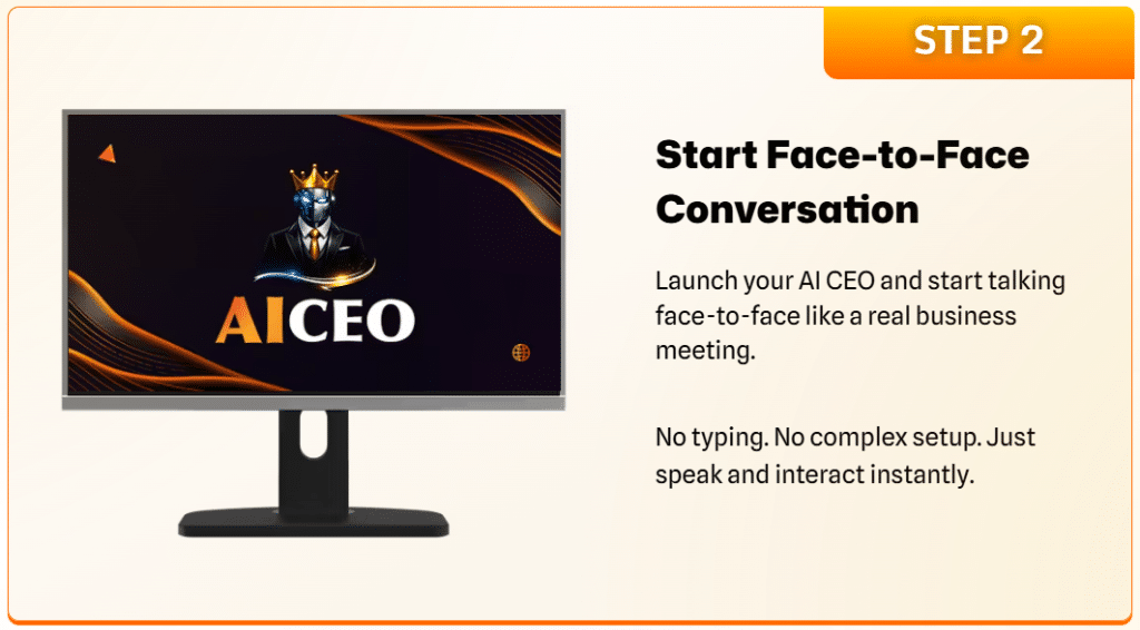Start a human-like, face-to-face conversation with your AI CEO. Speak naturally and ask questions about your business challenges.
