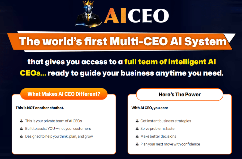 Imagine having your own team of expert CEOs available 24/7, giving you instant business guidance, strategy, and decision-making support whenever you need it. With AI CEO, this is no longer a dream. If you’re an entrepreneur, marketer, agency owner, or business professional looking to eliminate guesswork and grow smarter, this AI CEO review will give you everything you need to know before making a decision.