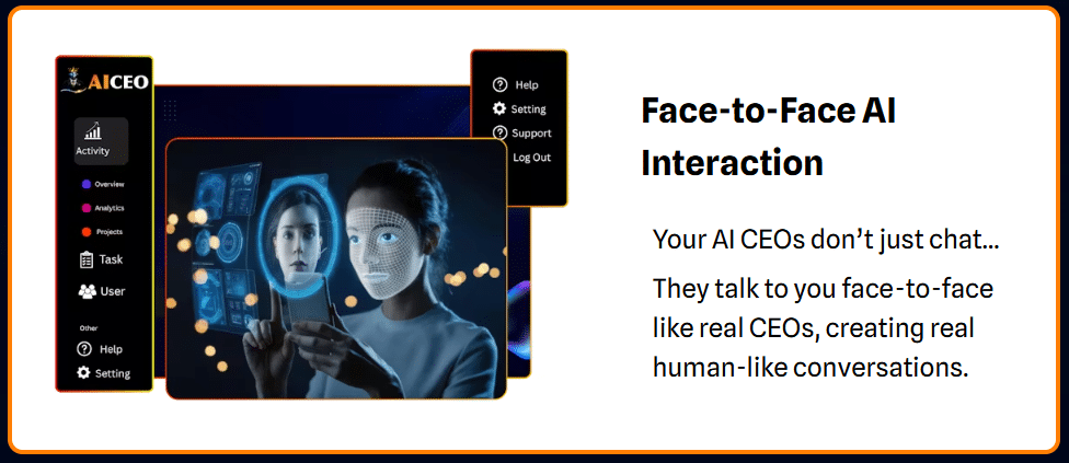 A: AI CEO primarily uses human-like voice conversations for interaction. - Q: Are there any monthly fees?