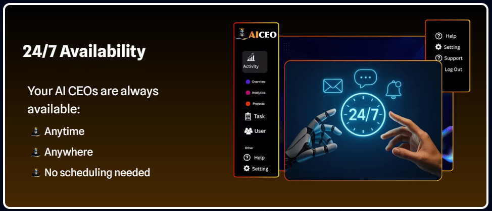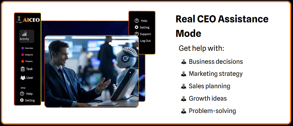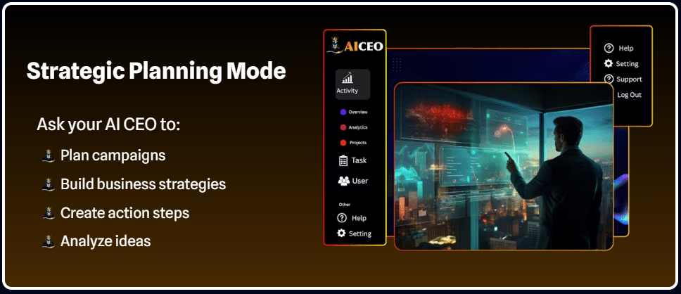 - Instant CEO-level strategies and decisions, no waiting time