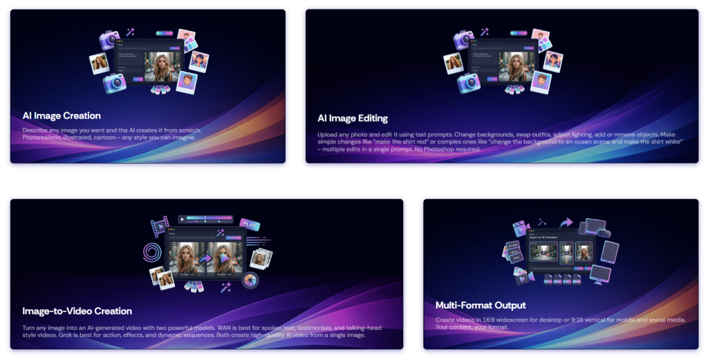 It’s positioned as a complete visual content system—designed to take an idea and turn it into ready-to-use images and videos in minutes.