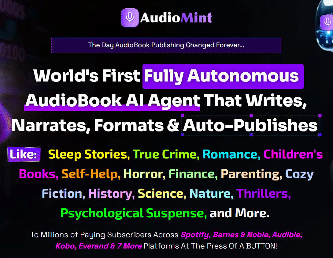 Imagine generating professional, royalty-making audiobooks without typing a single word or recording a single sound. With AudioMint, that fantasy becomes a reality. This AudioMint Review delves into how this revolutionary AI-powered system transforms audiobook publishing – eliminating months of work and thousands in expenses. Whether you’re a complete beginner or experienced publisher, AudioMint empowers you to create, narrate, and launch audiobooks on 10+ platforms at the push of a button.