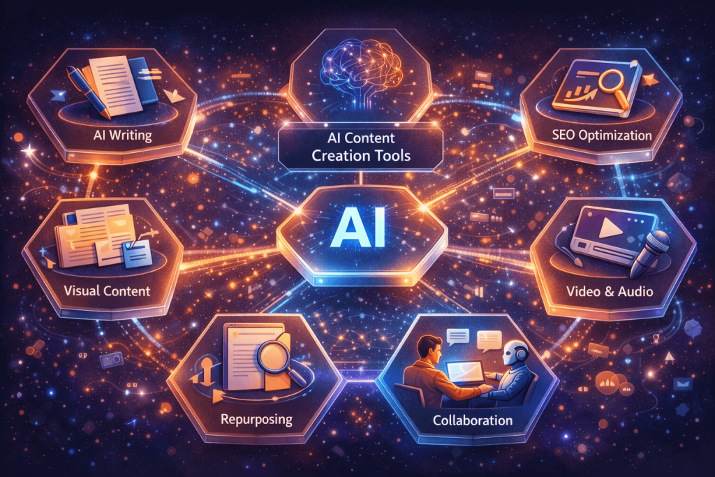 AI tools fall into clear categories that map to different stages of content creation and different media types. Understanding those categories helps you pick a toolkit that covers your workflow end-to-end.