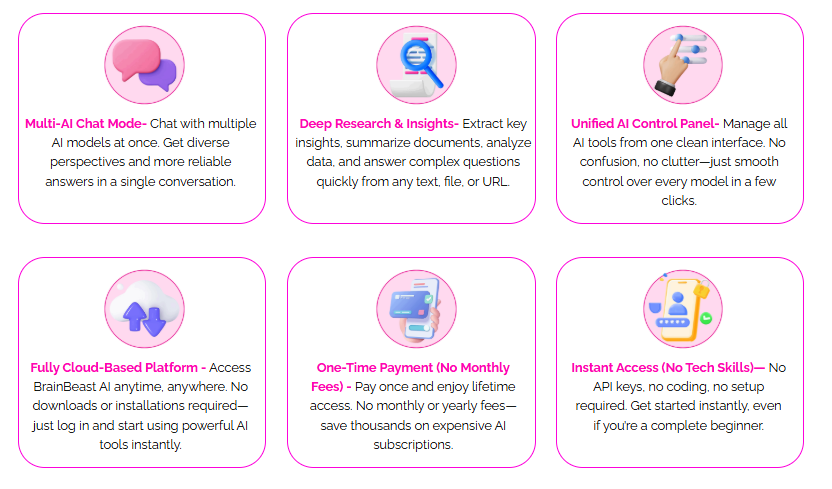 Compared to paying $100–$300 monthly for multiple AI subscriptions, BrainBeast AI offers significant savings—potentially thousands annually.