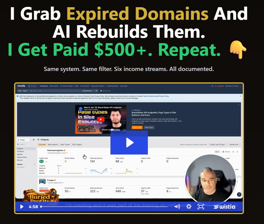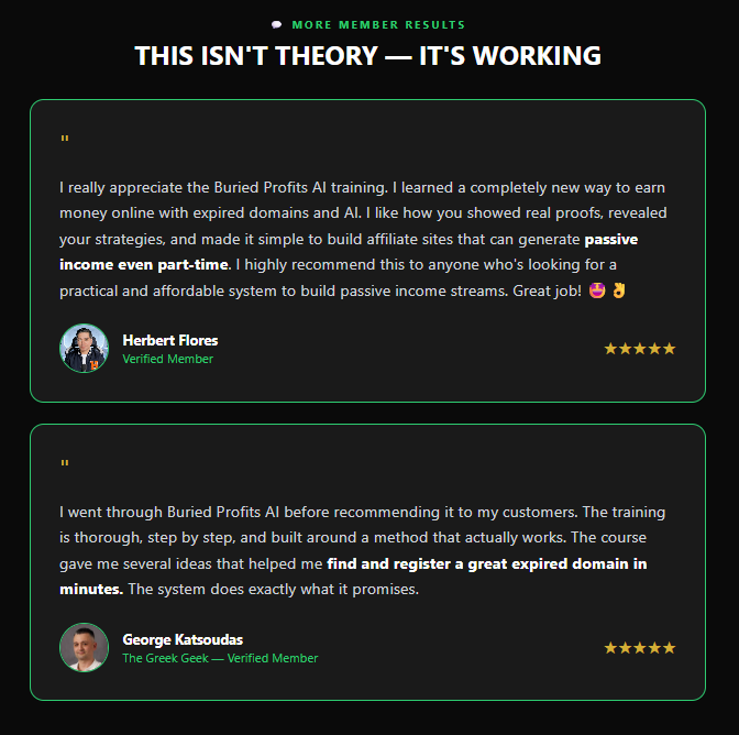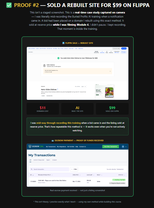 Buried Profits AI is a step-by-step training system that shows you how to find expired domains with existing value and use AI to rebuild and monetize them.