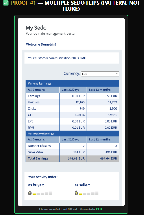 - Domains purchased for around $10–$11 sold for $40 and $100