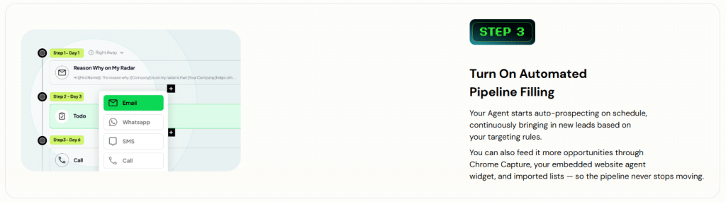 - Continuous pipeline refill with AI-powered lead generation and follow-up