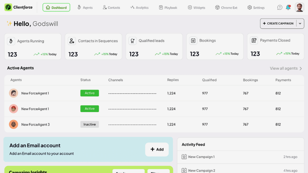 - Perpetual AI Sales Agents: Run continuous campaigns that never stop, keeping your pipeline always full without manual intervention.