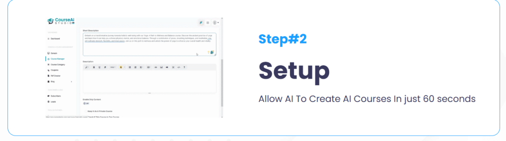 The digital course industry continues to explode, making online courses one of the most lucrative ways to generate income online. However, creating and launching courses usually requires significant time, research, and technical know-how, which discourages many aspiring entrepreneurs. CourseAi Studio is designed to eliminate these barriers by harnessing the latest AI technology to create profitable, high-quality courses and websites in just a few clicks.