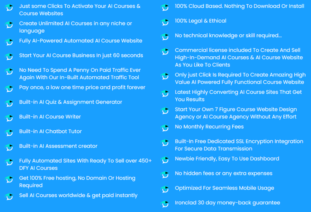 - Affiliate Marketers: Promote and sell AI courses as your own with built-in sales tools and traffic.