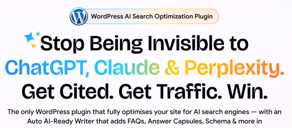 Who it’s for: Ideal for bloggers, affiliate marketers, digital agencies, and WordPress business owners who want to gain AI-driven traffic without complex technical work.