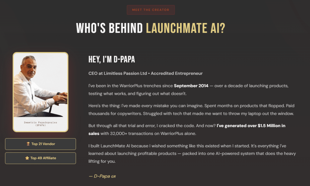 Ready to transform your product launches and finally stop struggling with technical and marketing overwhelm? Get LaunchMate AI today and launch your WarriorPlus product with AI power and ease.