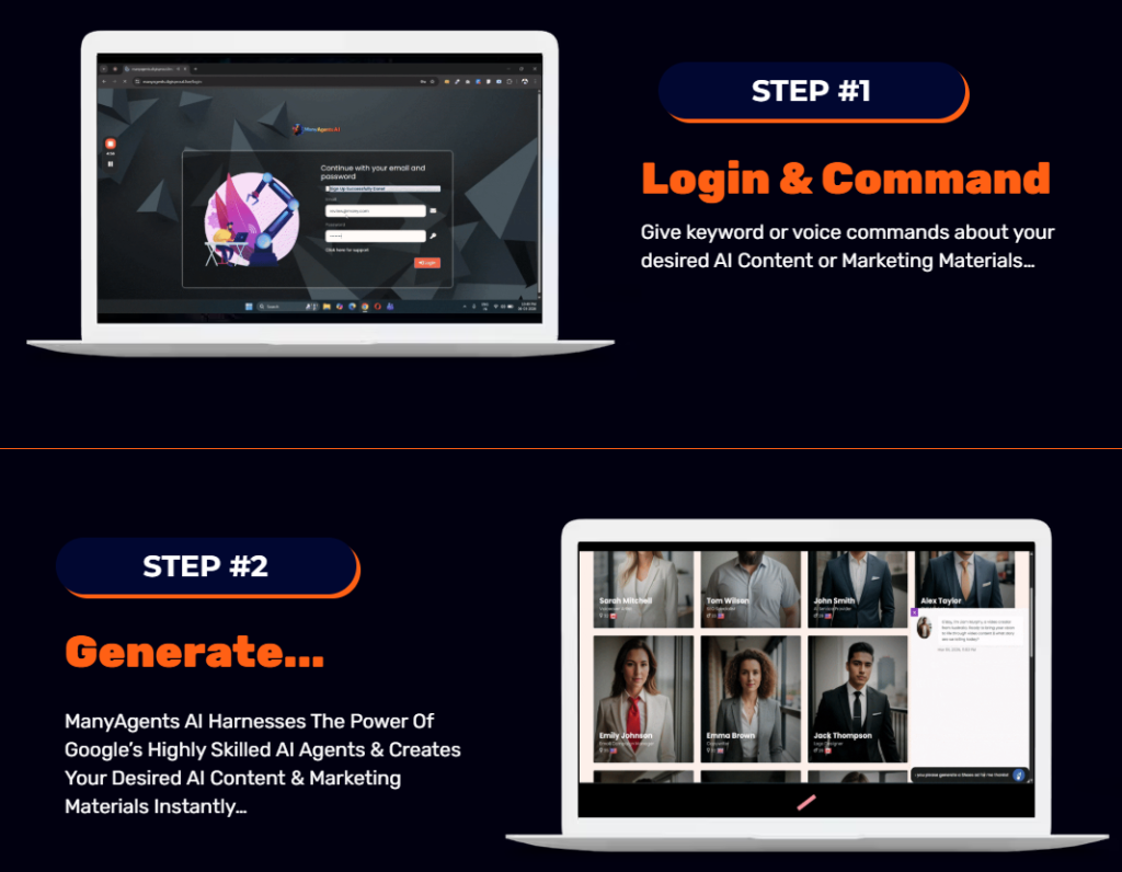 ManyAgents AI turns a single keyword or voice command into ready-to-use marketing materials in under 60 seconds.