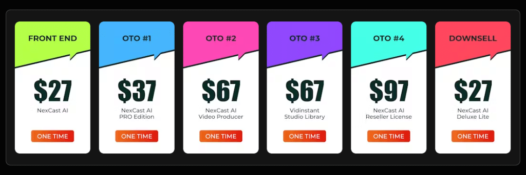 NexCast Video AI is offered as a one-time payment that includes lifetime access to all prompts, the full prompt system, training, and a commercial license. This is a huge advantage compared to monthly subscription fees or recurring payments typical of other video tools.