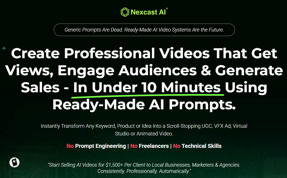 Creating eye-catching videos that engage audiences and drive sales has never been easier. If you’ve struggled with time-consuming video production, hefty freelancer costs, or confusing AI tools, NexCast Video AI offers a refreshing solution. This system turns any keyword, product, or idea into a cinematic, scroll-stopping video in under 10 minutes. Let’s dive into the NexCast Video AI Review and explore how this innovative tool can transform your video marketing game.