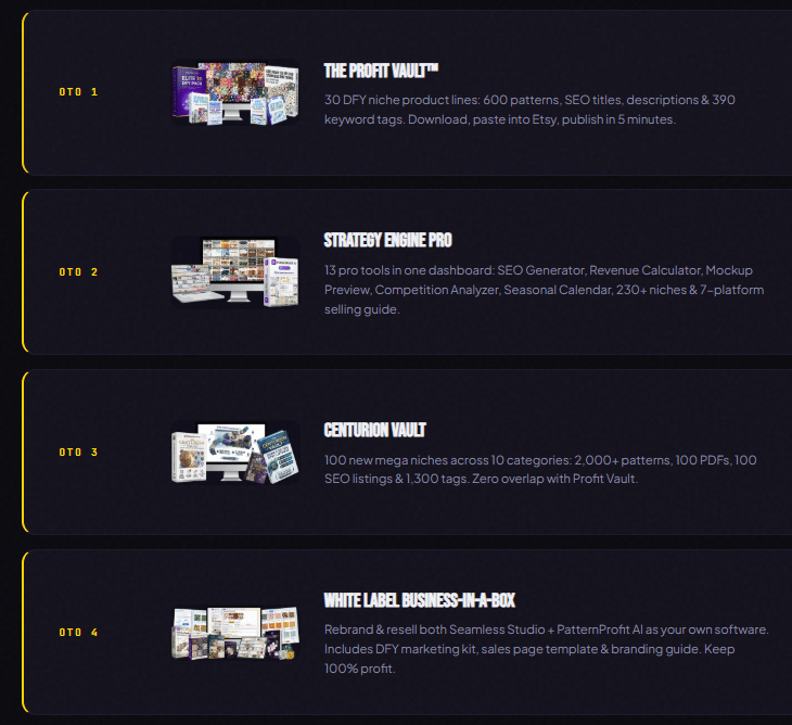 - 50-Niche Library: Market-validated, high-demand pattern themes.