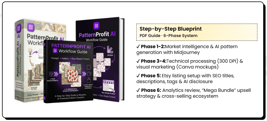 - Step-by-Step Etsy Blueprint: Guides you from pattern creation to optimized listing and marketing strategies.
