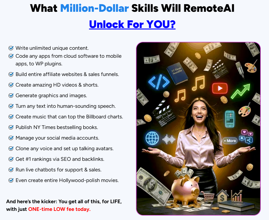If you want a private, full‑stack AI environment that removes subscription headaches and centralizes model access, RemoteAI is a strong choice. You’ll get an enterprise‑grade server, OpenClaw automation, 100+ premium models, persistent memory, and a commercial license that unlocks monetization. It’s particularly useful if you’re building an agency, producing media at scale, or automating recurring business tasks. Expect a learning curve for advanced orchestrations, but the included training, templates, and 24/7 support make adoption straightforward. With the one‑time payment model and risk‑free trial window, RemoteAI offers a high‑value option for users aiming to run an AI‑powered business from their own private cloud server.