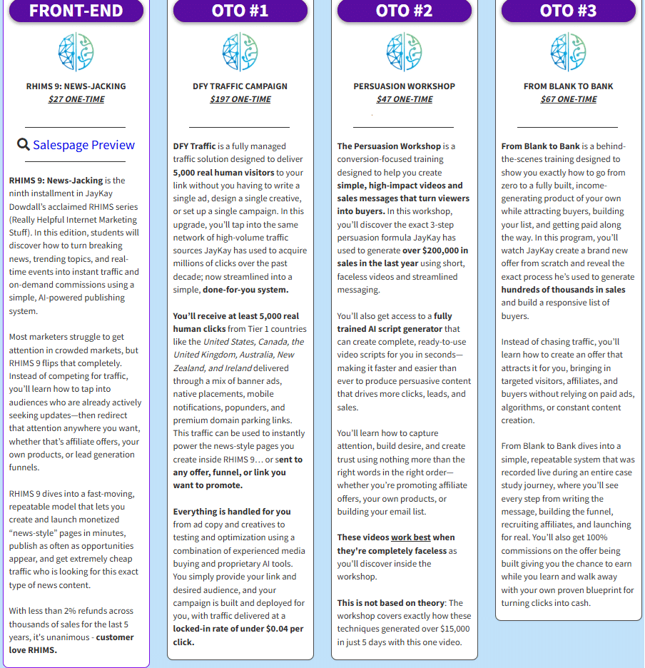 The core functions include automated content creation, news-jacking tactics, and affordable, on-demand traffic delivery without dependency on SEO, social media algorithms, or personal branding. RHIMS 9 replaces many traditional, slow, and expensive traffic methods by offering a fully monetized newspage set up in minutes and a streamlined traffic funnel delivering high ROI conversion.