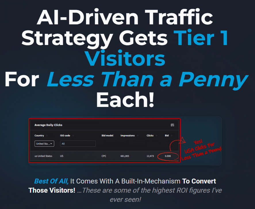 What stood out positively was the system’s dual focus: not only does it generate content quickly with AI, but it also reveals how to get highly affordable traffic to that content without relying on fickle algorithms or branding. This focus on Tier 1 traffic under a penny is practically unheard of in cost-effectiveness.