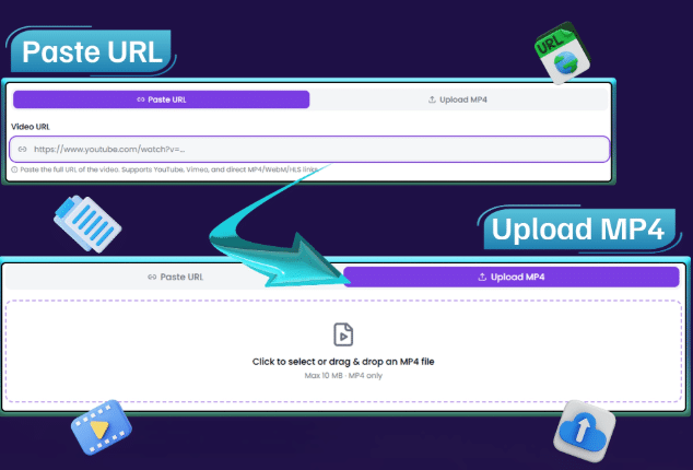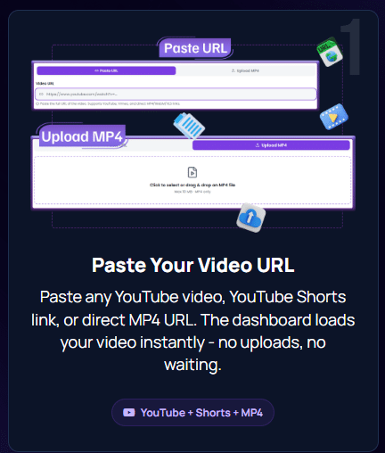 - Support for YouTube Shorts and MP4 URLs: Broad video source compatibility.