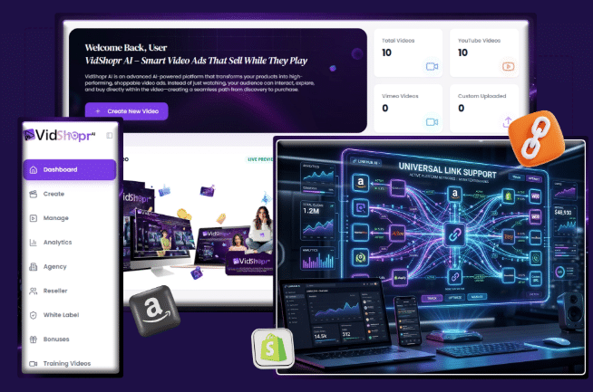 A: Yes, you can link to Amazon, ClickBank, Shopify, and virtually any URL. - Q: Does VidShopr AI require video uploads?