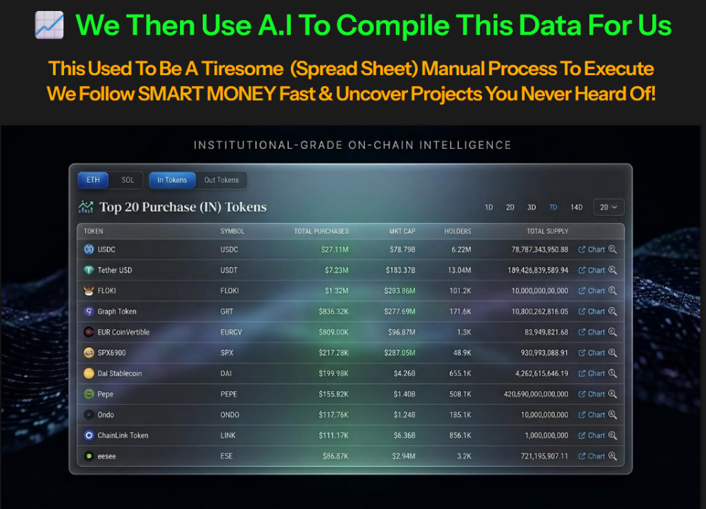 The system gathers real-time data from crypto markets, including price movements, trends, and patterns. - AI Processing